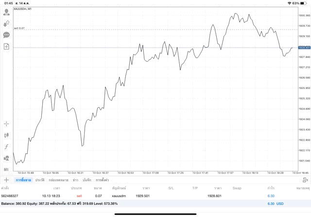ได้กำไรแล้ว +6.30 USD ถ้าเปิดการเทรด XAUUSDm ครั้งนี้ไว้ต่อการลงทุนครั้งนี้อาจได้กำไรเพิ่มขึ้น หรือ อาจกลับไปติดลบขาดทุน