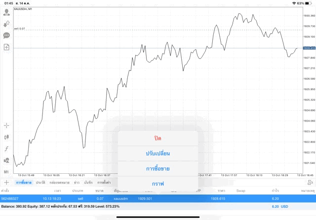 คลิ๊กค้างบนการเทรดที่ต้องการปิดแล้วปิดสถานะ