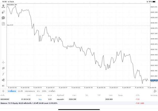 เริ่มแล้ว การลงทุน ทองคำ 0.01 lot ตอนเปิดสถานะการเทรด จะติดลบก่อนแต่ถ้าจังหวะราคาขยับพอดีขณะส่งคำสั่งอาจได้บวกเลย หลังจากเปิดสถานะแล้วรอเวลาผ่านไป ราคาอาจเปลี่ยนแปลง เกิดผลกำไร หรือ ขาดทุนขึ้น