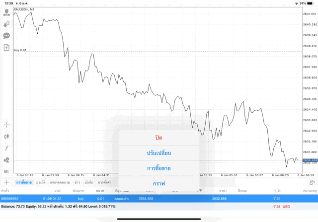 คลิ๊กค้างบนการเทรดที่ต้องการปิดแล้วปิดสถานะ