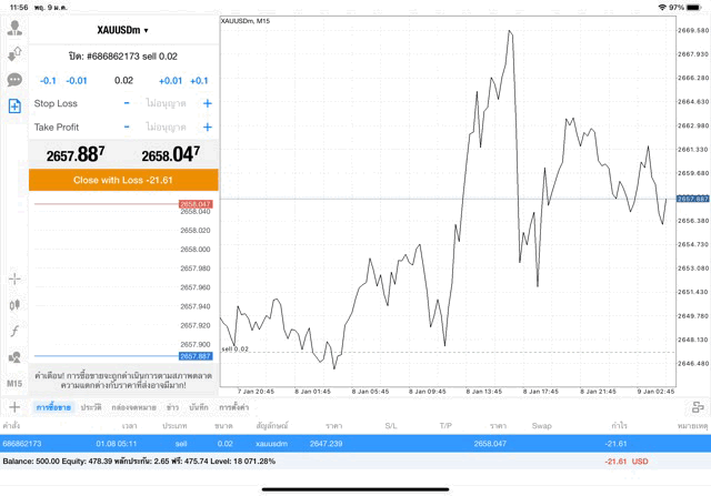 เริ่มแล้ว การลงทุน ทองคำ 0.01 lot ตอนเปิดสถานะการเทรด จะติดลบก่อนแต่ถ้าจังหวะราคาขยับพอดีขณะส่งคำสั่งอาจได้บวกเลย หลังจากเปิดสถานะแล้วรอเวลาผ่านไป ราคาอาจเปลี่ยนแปลง เกิดผลกำไร หรือ ขาดทุนขึ้น