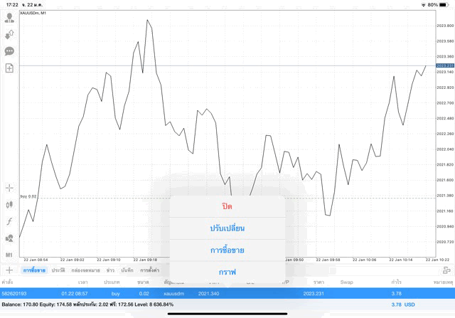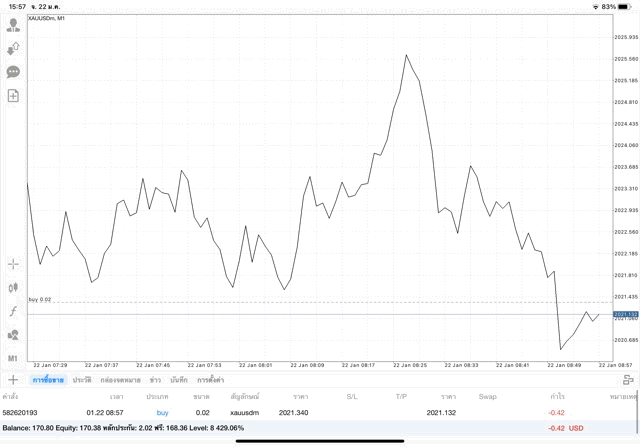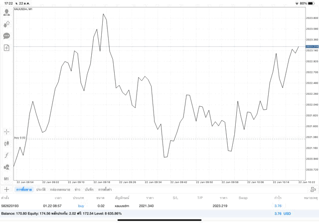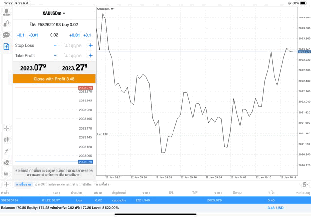 ติดลบก่อนตามระเบียบหลังจากนี้นักลงทุนอาจจะขาดทุนหรือได้กำไรจากการเทรด XAUUSD เริ่มขึ้นแล้ว การลงทุน ทองคำ 0.02 lot